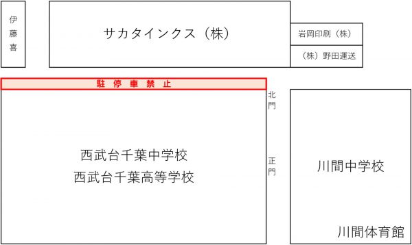<車の駐停車について> 正門・北門付近での駐停車は、車の通行や歩行者の事故防止のためご遠慮ください。