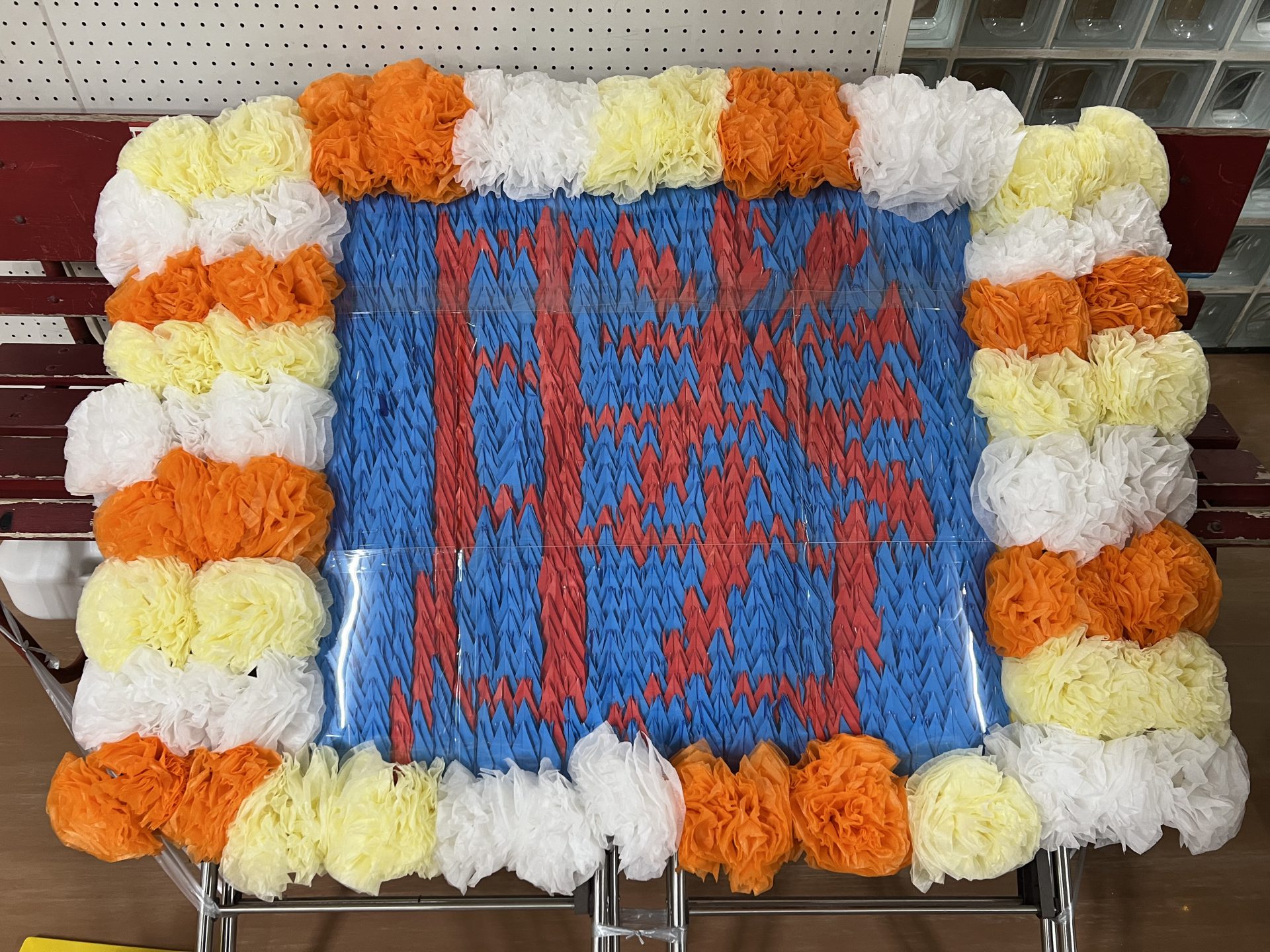 生徒会室前に折り紙を置いて、生徒の皆さんにツルを作ってもらいました!