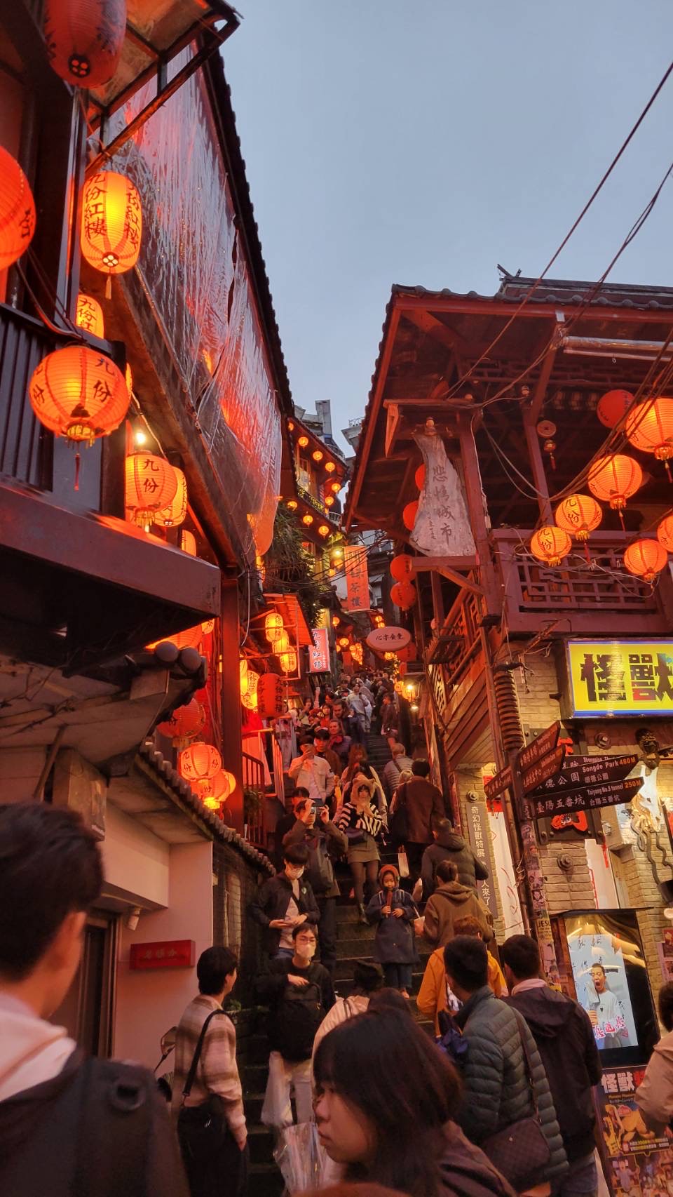 沢山の階段を登った後に見た九份の街並みは、提灯に火が灯りとても幻想的でした🏮